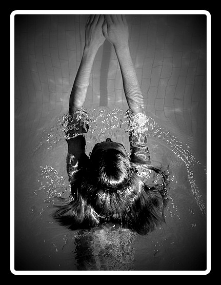 It’s the first day of swimming lessons for my husband and me. After the class, the instructor suggests we practice in a different lane. Apart from the two of us, a young Canadian girl and a gentleman from Pakistan join the practice. I am still practicing floating when a girl, snow white in complexion and no more than five years old, walks across the deck to stand near me.