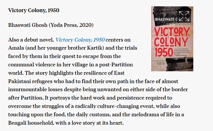 “Comradeship in love distinguishes this novel of rebuilding refugee lives after the Bengal Partition. Bhaswati Ghosh’s debut novel ‘Victory Colony 1950’ also offers that rare thing: happiness for its characters.”