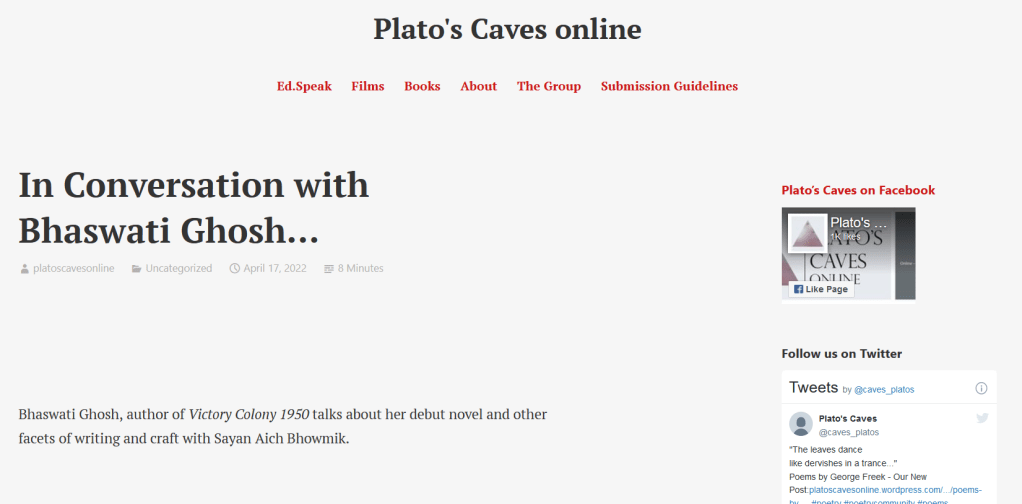 I spoke with Sayan Aich Bhowmik on Victory Colony, 1950 and other aspects of my writing and translation projects.